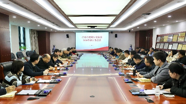 2月6日上午,江苏省建筑行业协会召开2026年初工作会议。协会会长耿裕华、党建指导员唐世海、副会长兼秘书长孙忠建、专家委副主任委员纪迅及协会全体工作人员参加会议。副会长兼秘书长孙忠建主持会议。