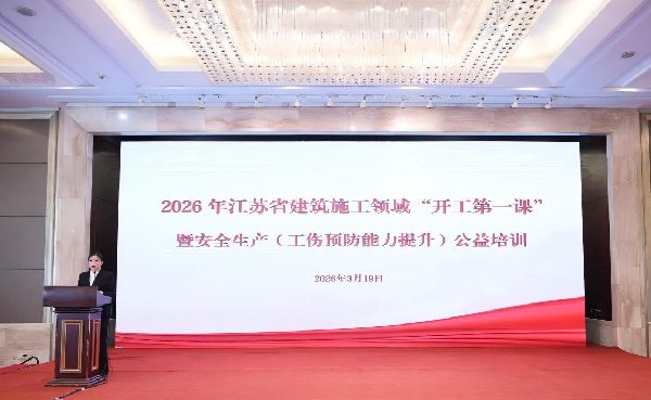 3月19日上午,江苏省建筑行业协会在南京举办2026年江苏省建筑施工领域“开工第一课”暨安全生产(工伤预防能力提升)公益培训。本次活动与工伤预防能力提升培训紧密结合,线下线上同步开展,线下参会人员约100人,线上观看学习超2.6万人次。培训结束后,参训人员可参加工伤预防能力提升测试。