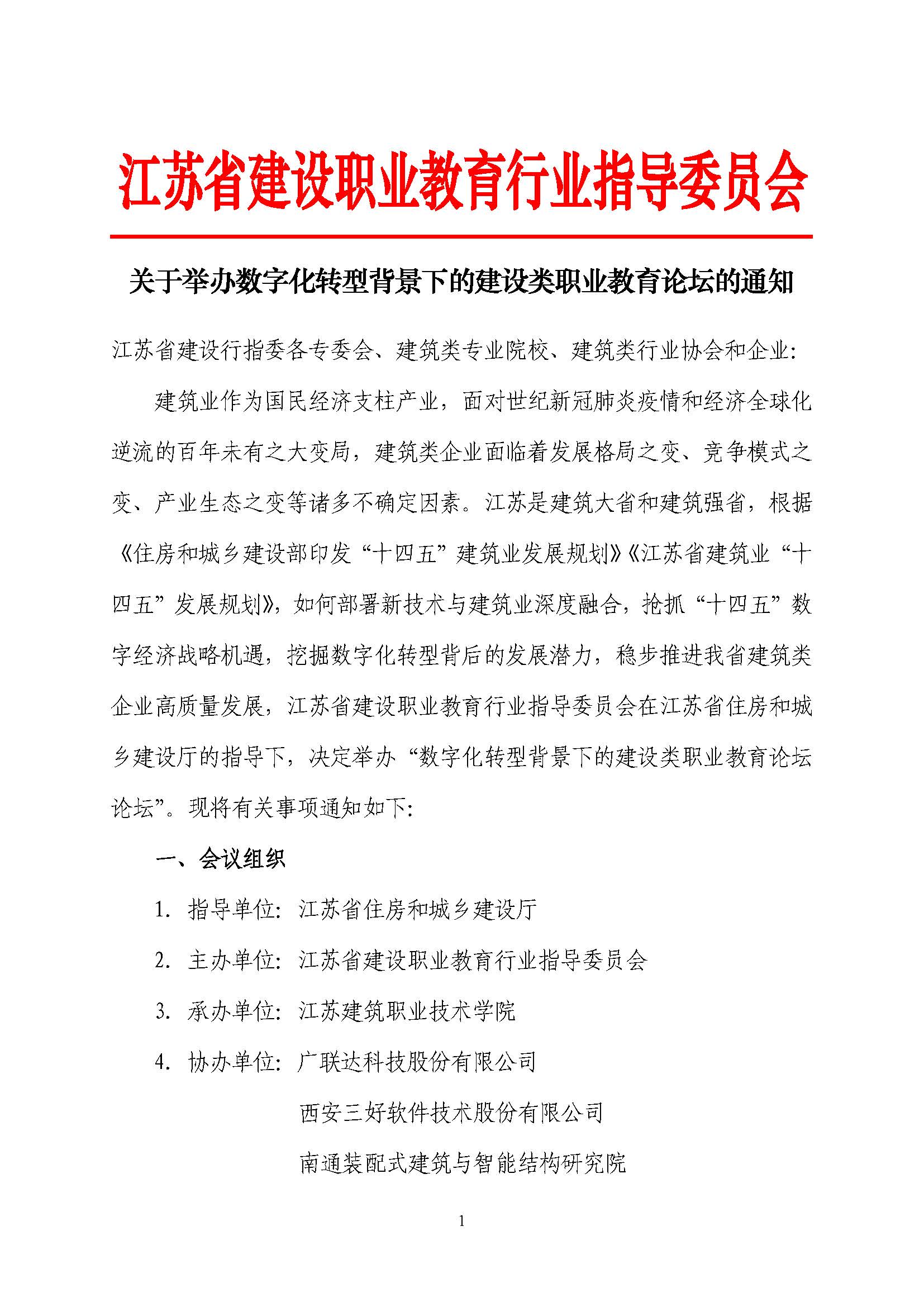 关于举办数字化转型背景下的建设类职业教育论坛的通知