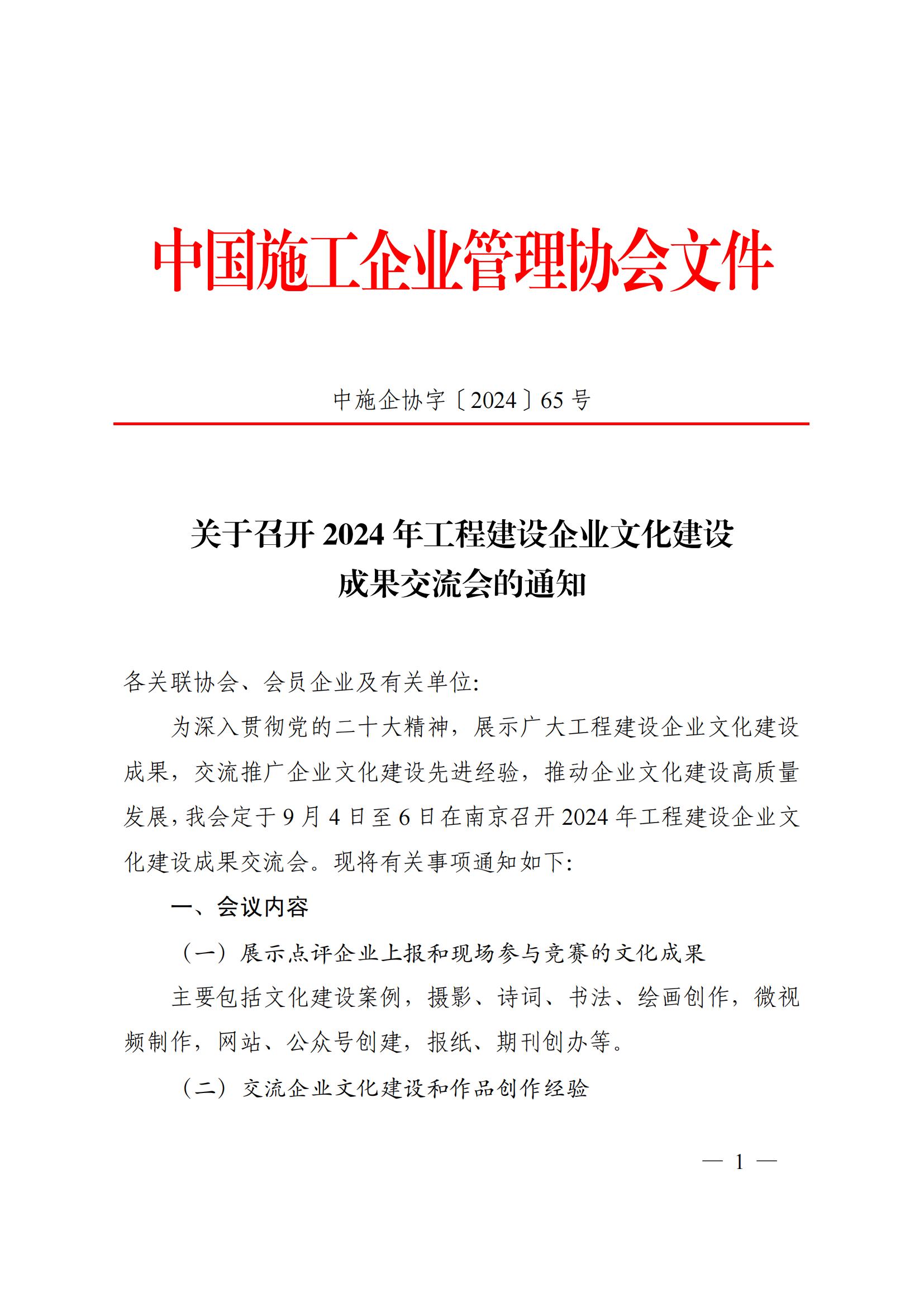 关于召开 2024 年工程建设企业文化建设成果交流会的通知